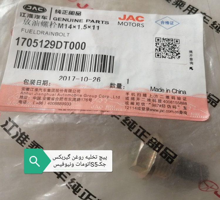 پیچ تخلیه روغن گیربکس جکS5اتومات ونیوفیس
